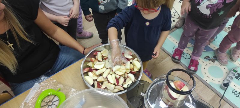 Jabłko to jesienny owoc, pełen witamin i smaku. Wiewiórki poznały jego walory podczas tygodniowego projektu. Wspólnie przyrządziły suszone jabłka, sok oraz ciasteczka. A podsumowaniem były wspólne zabawy masą solną, z której powstały piękne jabłuszka.
