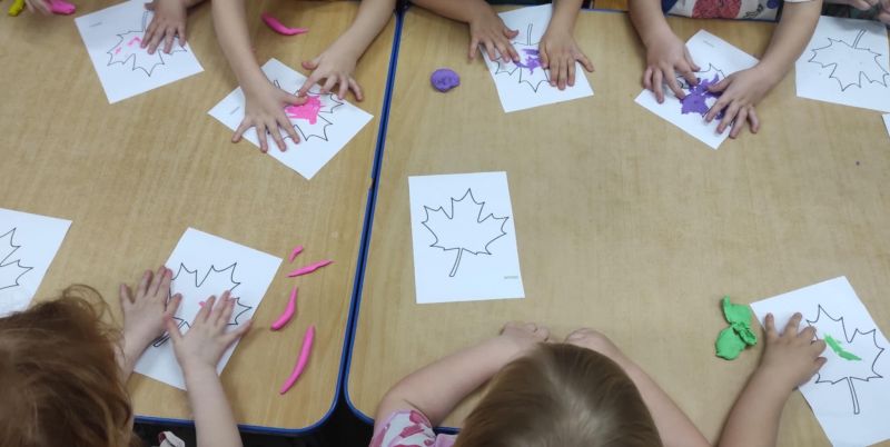 Jesienne liście- zajęcia z plasteliną