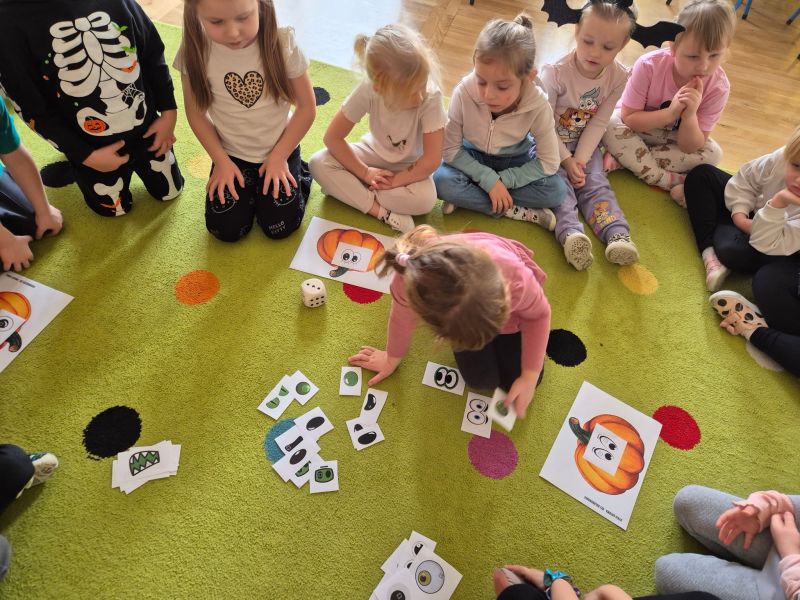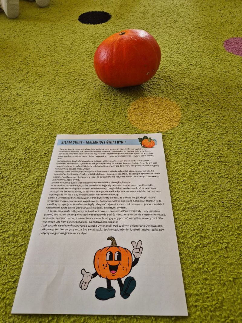 Niedźwiadki podczas dnia dyni nie tylko wspaniale się bawiły i tańczyły, ale także odkrywały tajemnice dyni. Poznały jej budowę oraz cykl życia. Doskonaliły umiejetność liczenia, wykorzystujac do tego pestki z dyni. Kodowały na macie, rozwijajac ligiczne myślenie. To był dzień wrażen i nauki w naszej STEAMowej Krainie.