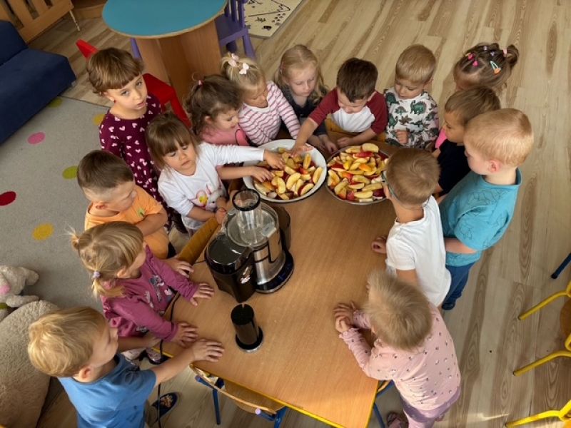Samodzielne tworzenie pysznego soku jabłkowego, to nie tylko doskonała zabawa ale również wartościowa lekcja o zdrowym odżywianiu. Zapraszamy do obejrzenia tych radosnych momentów uwiecznionych na fotografiach. Pokazują one jak wiele radości można czerpać z prostych czynności i jak ważna jest edukacja przez zabawę.