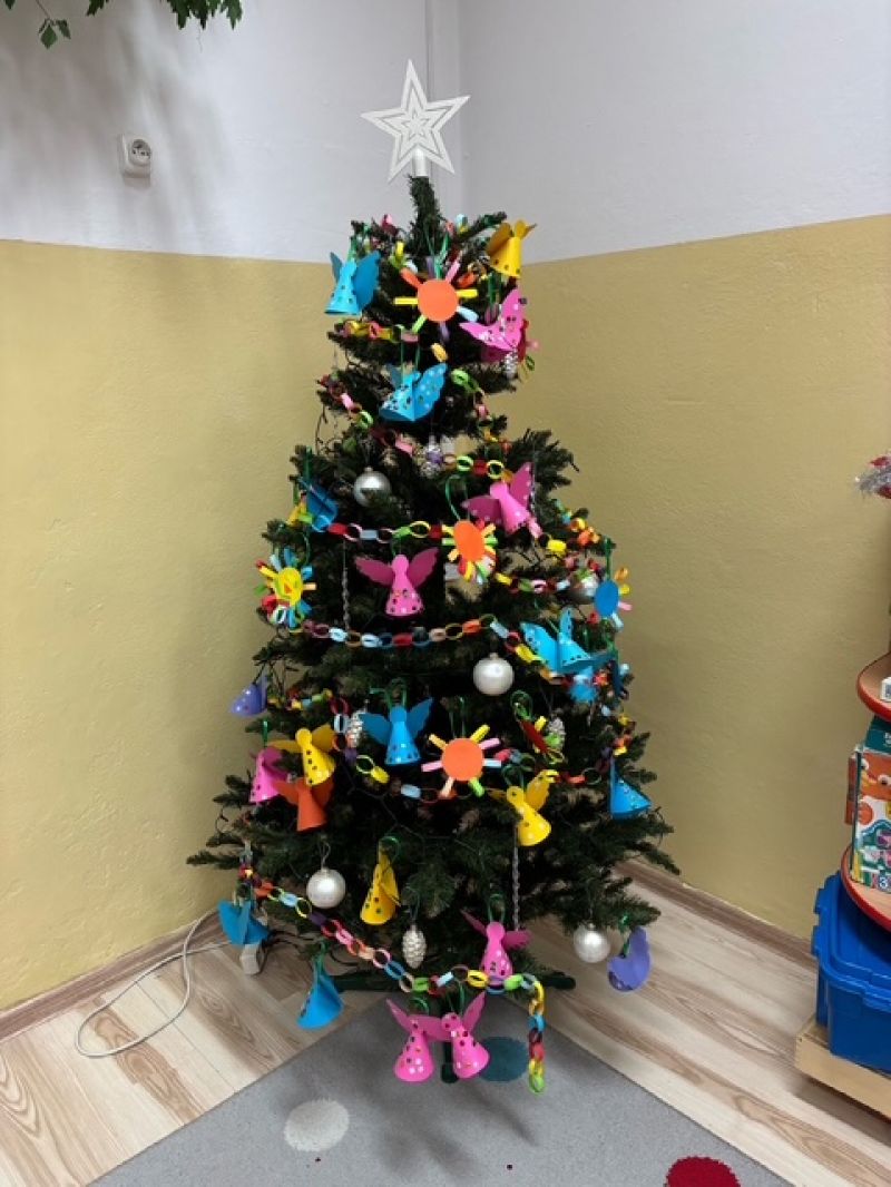 Rodzice wspólnie z dziećmi robili papierowe ozdoby świąteczne. Udekorowaliśmy nimi choinkę w naszej sali!