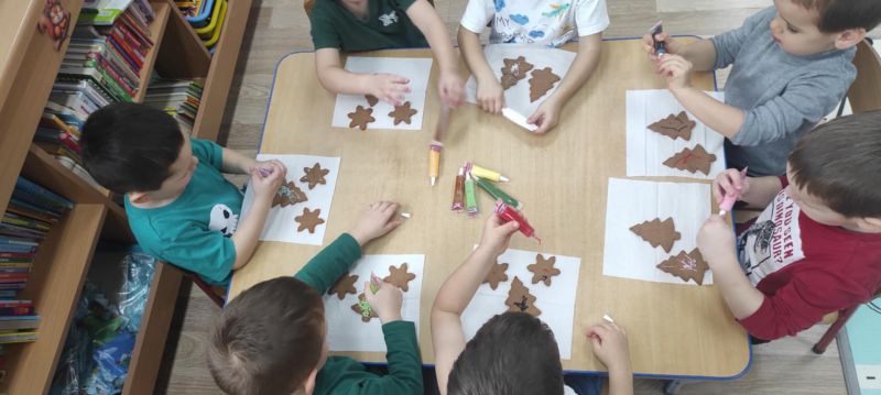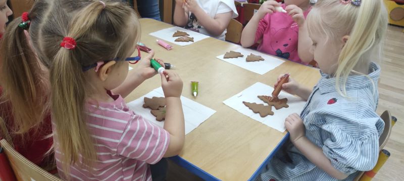 W przededniu wizyty św. Mikołaja Wiewiórki przygotowały pyszne pierniczki, które z entuzjazmem i zaangażowaniem udekorowały. Te łakocie były ozdobą stołu podczas spotkania świątecznego.