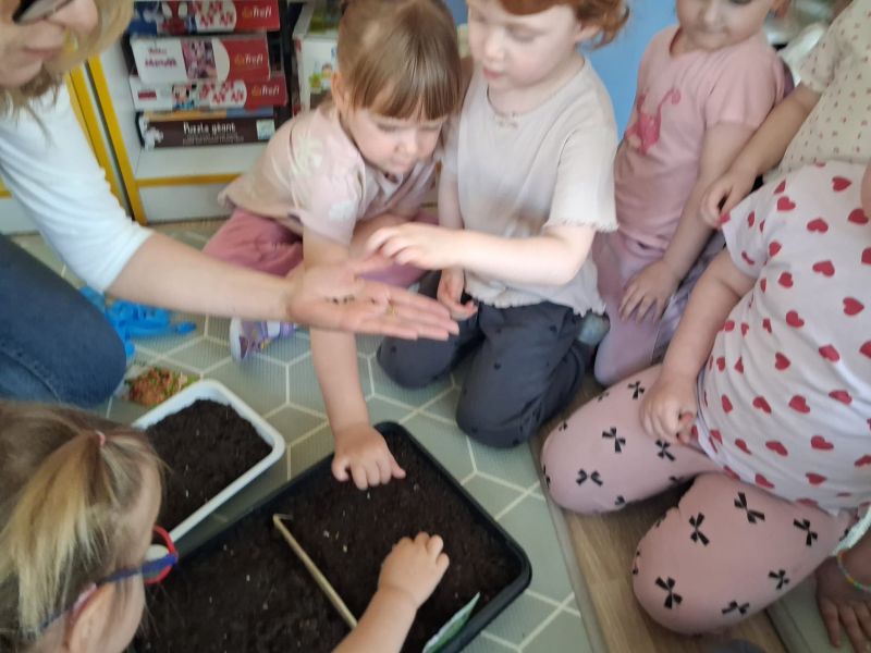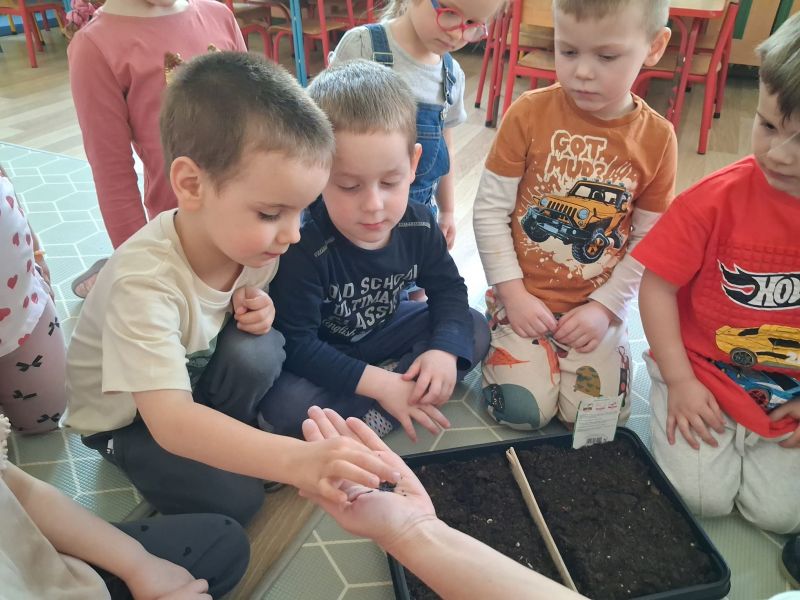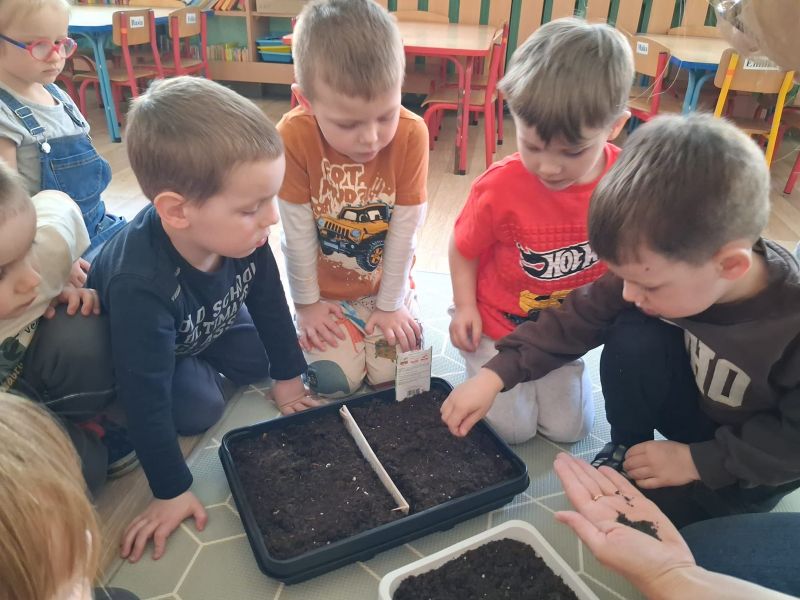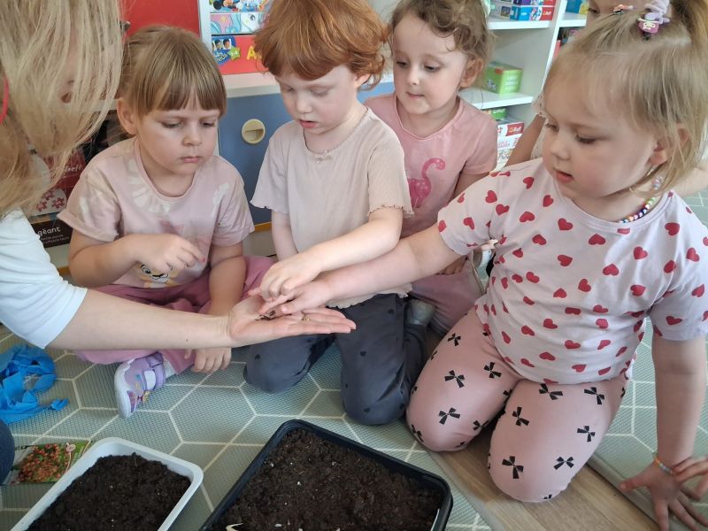 Wiewiórki z ciocią Ulą wysiały nosionka i prowadziły obserwacje ich rozwoju.